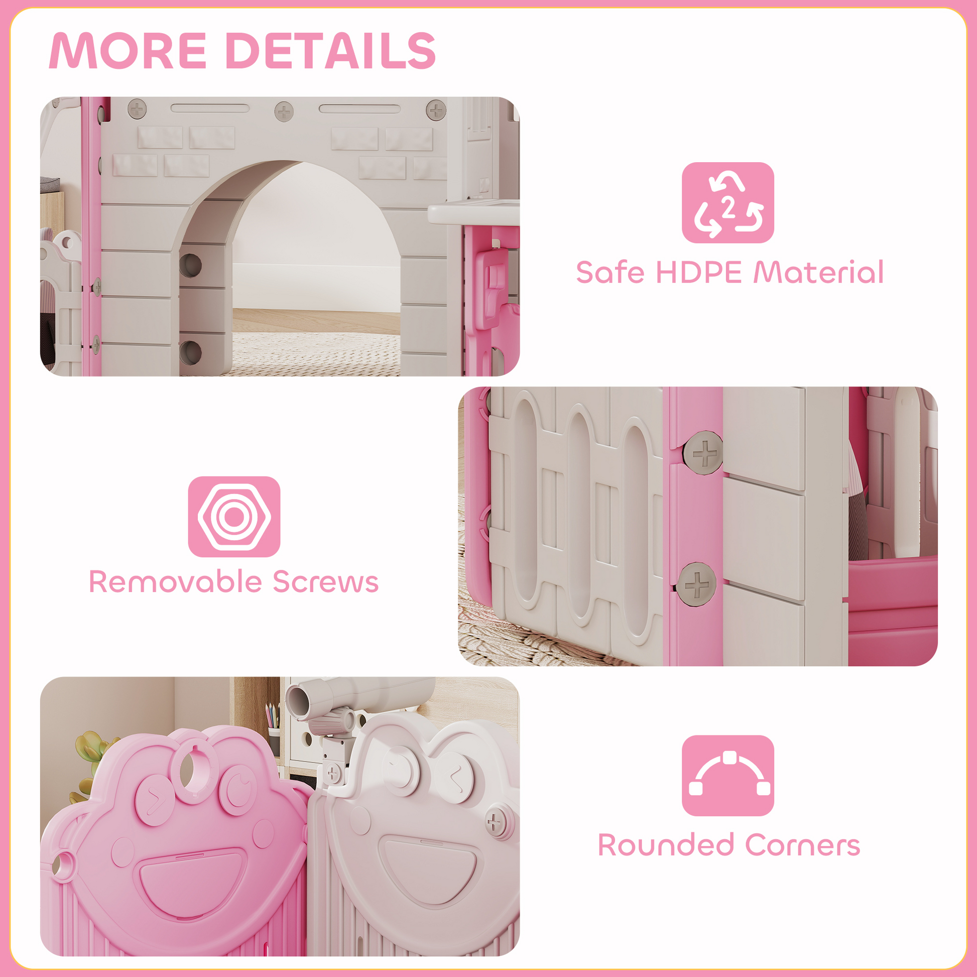 Qaba 7-in-1 Toddler Slide, Kids Slide Climber Playset with Playhouse and Basketball Hoop for 1-4 Years, Pink
